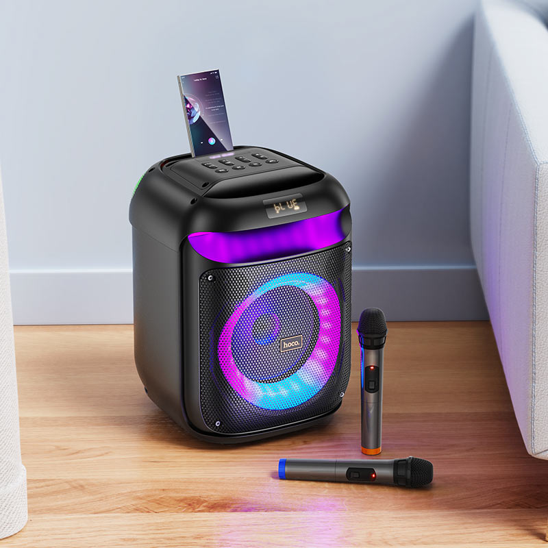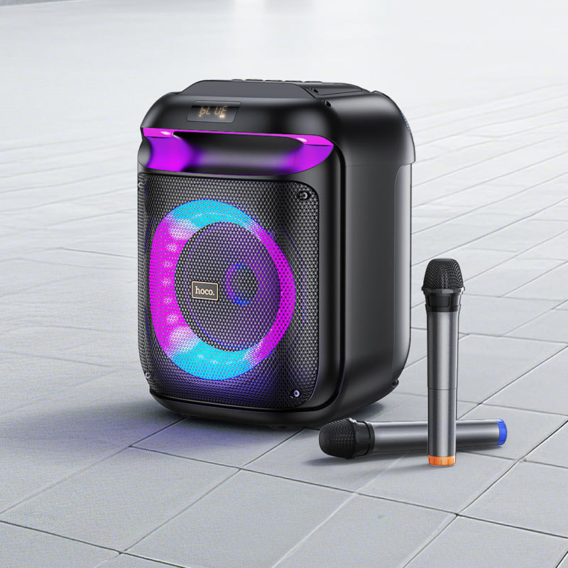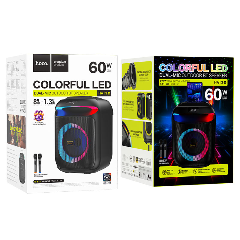 HA13 Ramon, outdoor wireless speaker, BT v5.4, 5-6 hours of work, supports BT, TF card, USB flash drive, AUX, TWS playback modes, RGB light ring, with 2 wireless microphones