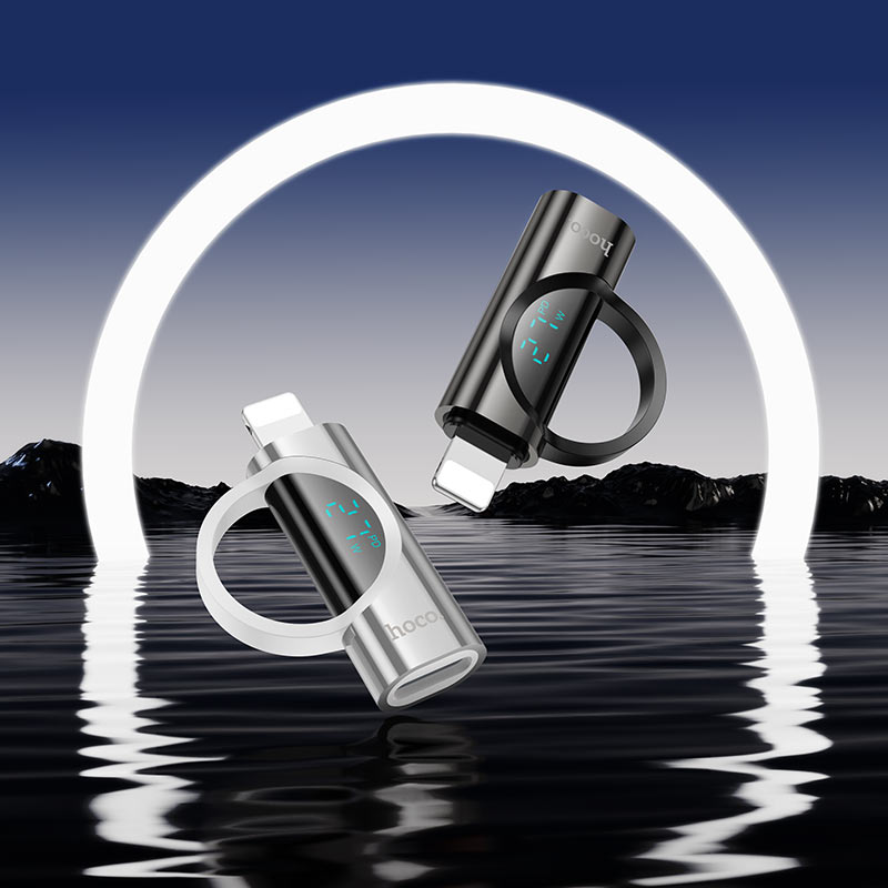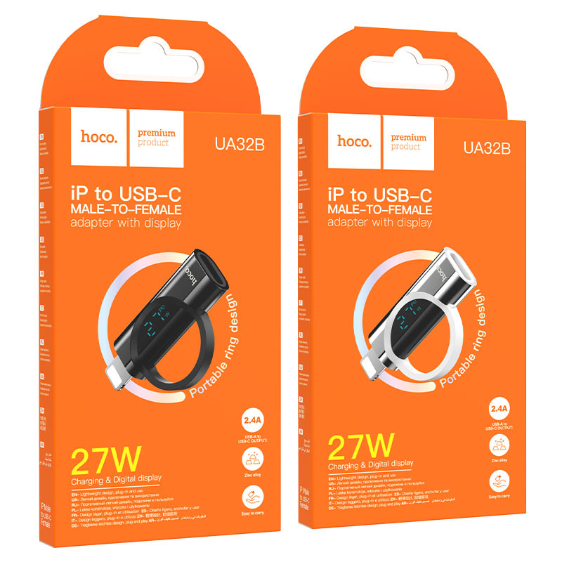 UA32B, portable adapter iP male to Type-C female, digital display, supports PD27W charging