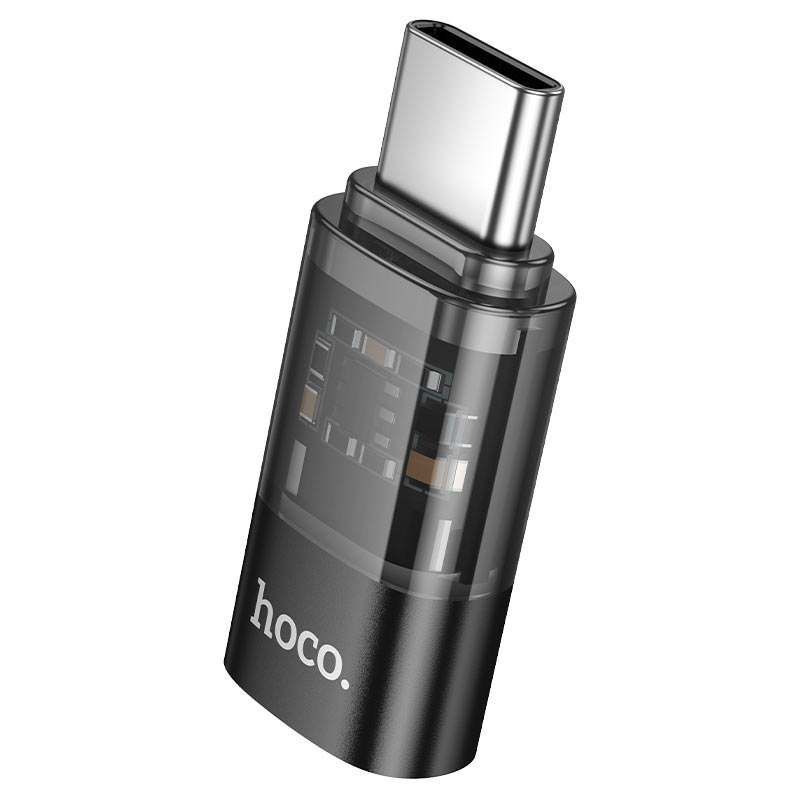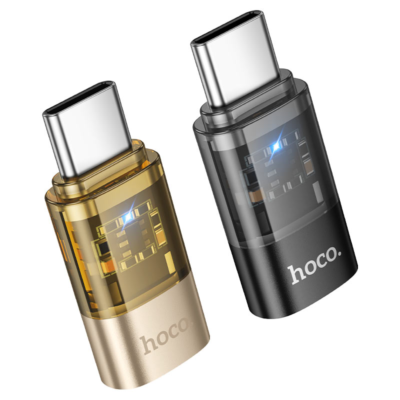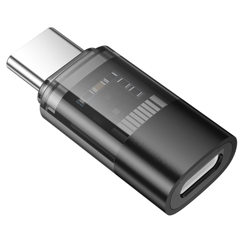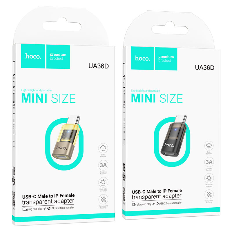 UA36D, portable adapter Type-C male to iP female, 480Mbps, semi-transparent housing, dual-side LED indicator
