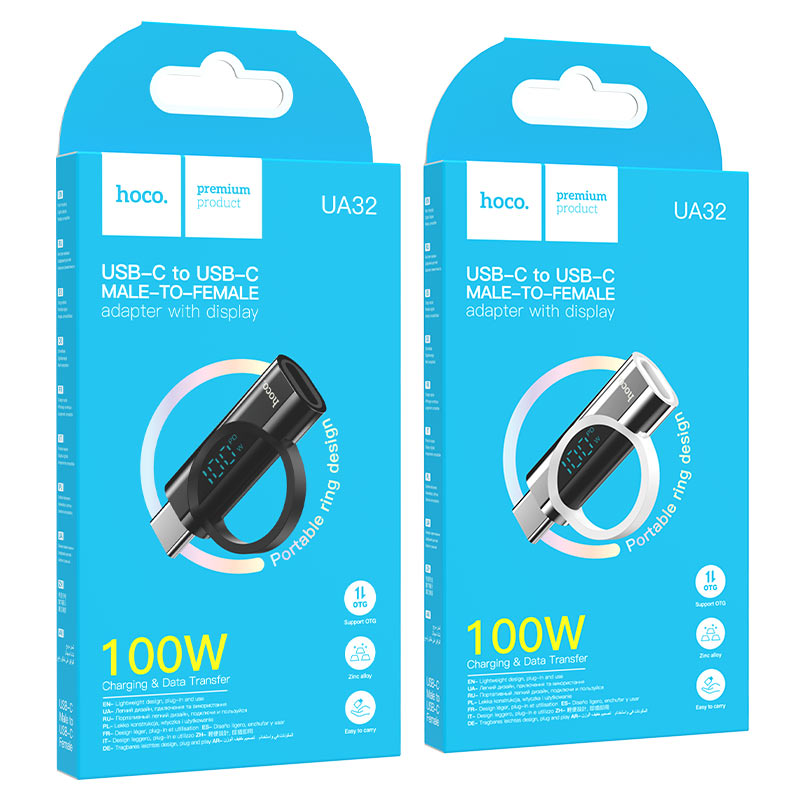UA32, portable adapter Type-C male to Type-C female, digital display, supports 100W charging, OTG and data transfer