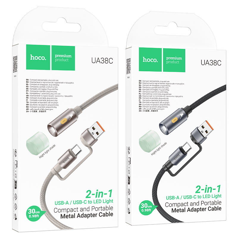 UA38B, cable adapter USB-A / Type-C male to LED light