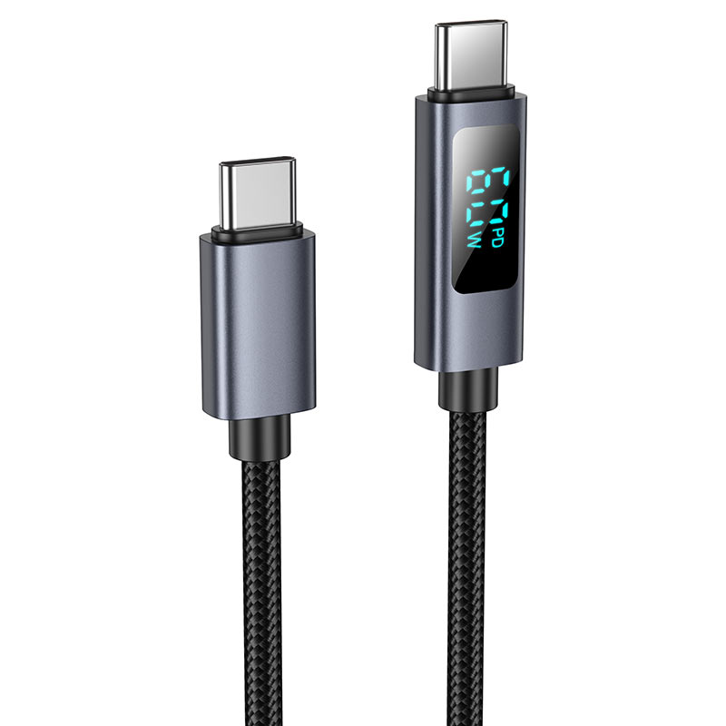 X112 惠品屏显充电数据线 Type-C to Type-C, 支持笔记本电脑最大60W快充, LED 横屏数显功率, 尼龙编织线体, 铝合金外壳, 线长度 – 1m